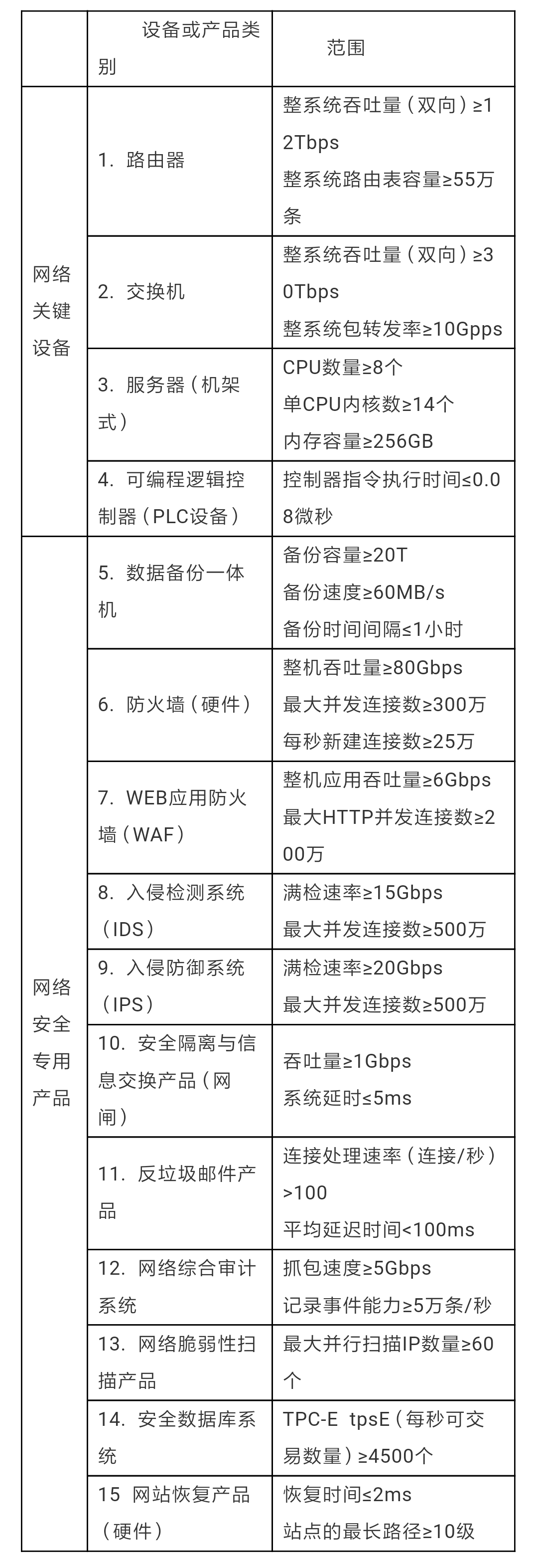 7. 网络关键设备和网络安全专用产品范围如下: