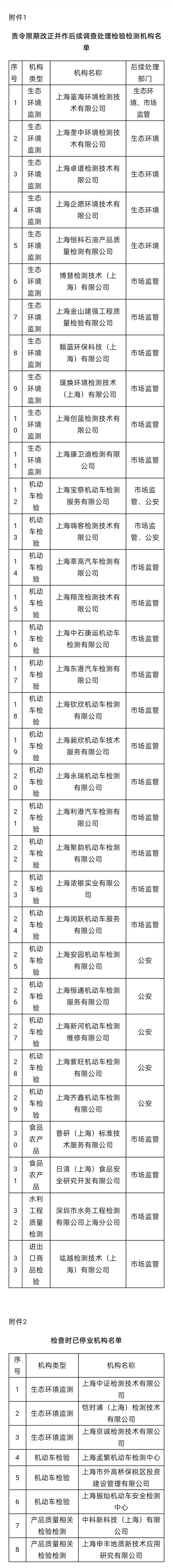近日,上海市市场监管局等10个部门通报了检验检测相关领域监督抽查工作情况,在本次被抽查的120家检验检测机构中,33家机构因涉嫌存在较严重违规违法行为,被移送各有关执法部门作进一步调查处理。
