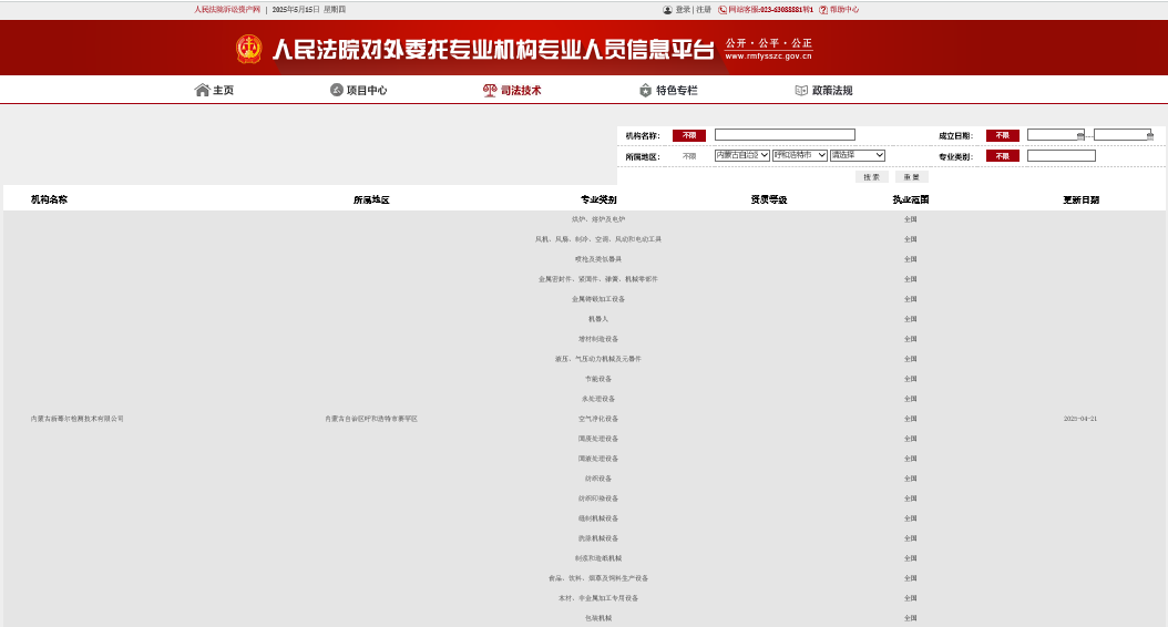 内蒙古新蓦尔检测技术有限公司可依法接受司法机关、仲裁机构、产品质量当事方的委托,对产品事故、产品质量纠纷出具相应的产品质量鉴定报告,并可对外提供“专家辅助人”等法律服务。